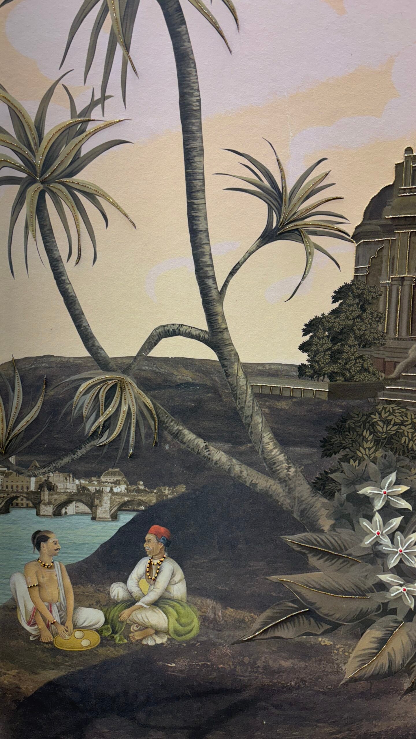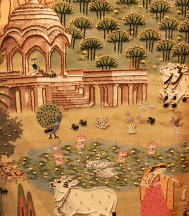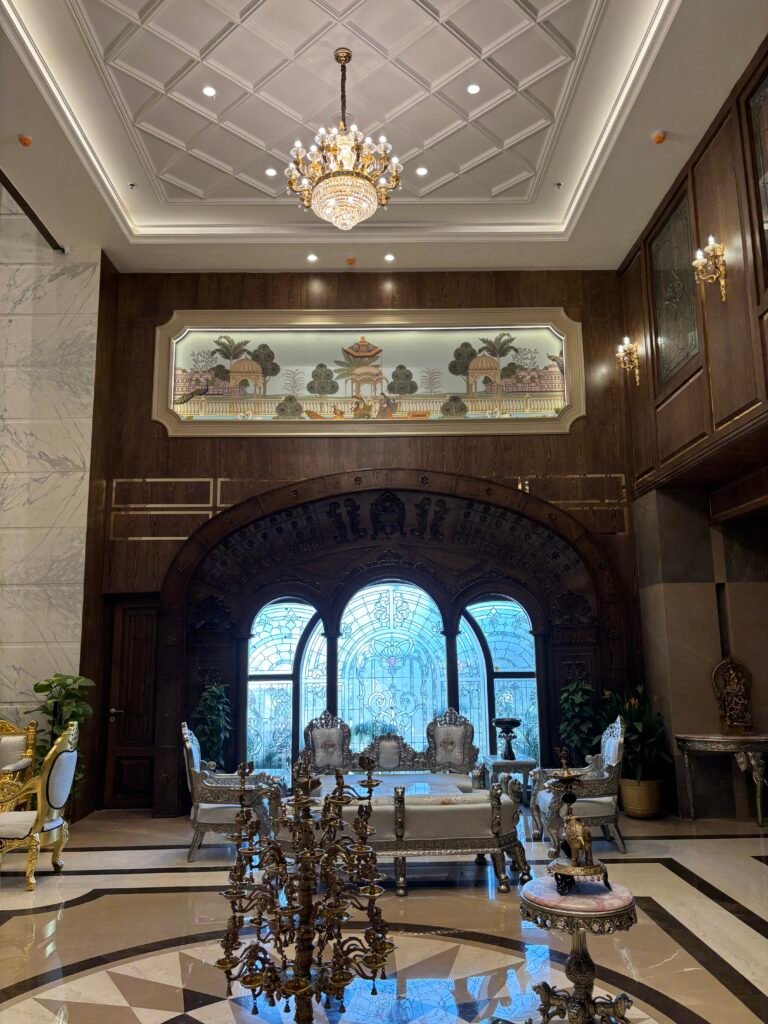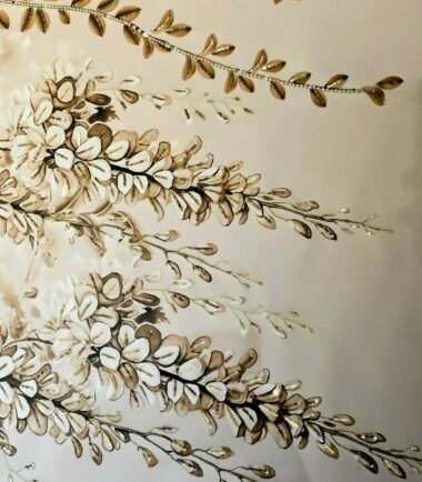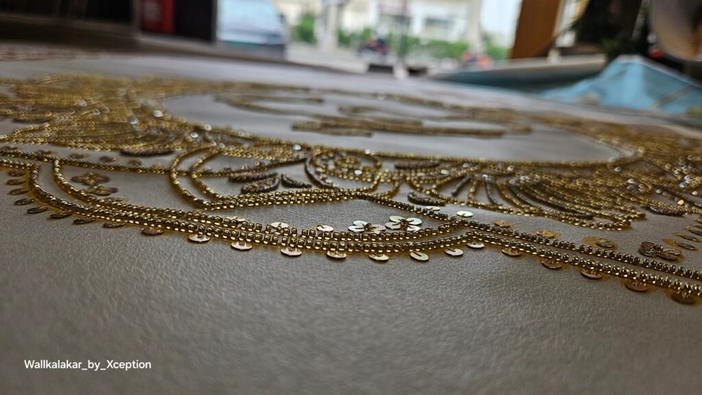 Hand-embroidered luxury wallpapers created with intricate craftsmanship, premium fabrics, and bespoke detailing — designed exclusively for refined interiors.